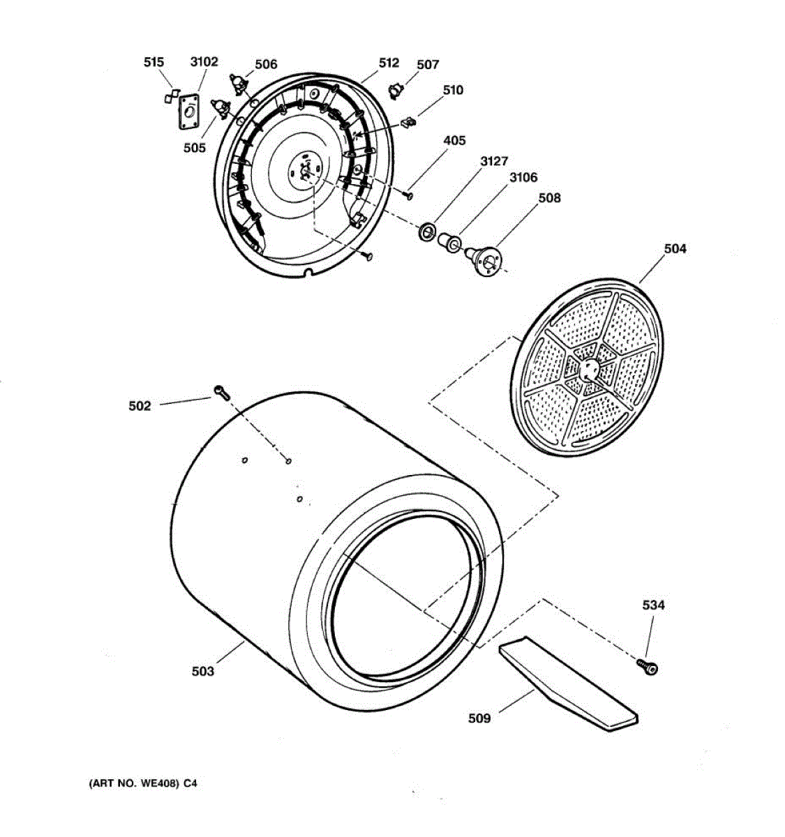 Parts for Ge DBB3300EA0WW: 04 - Drum Parts