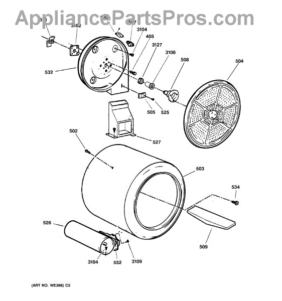 You should replace the rear drum bearing sleeve if it becomes worn out or damaged. Causes of a bad bearing sleeve can include regular wear and tear, lack of lubrication, or excessive loads that cause undue stress on the component. A malfunctioning bearing sleeve can lead to increased friction, noise, and potential damage to other parts of the dryer.