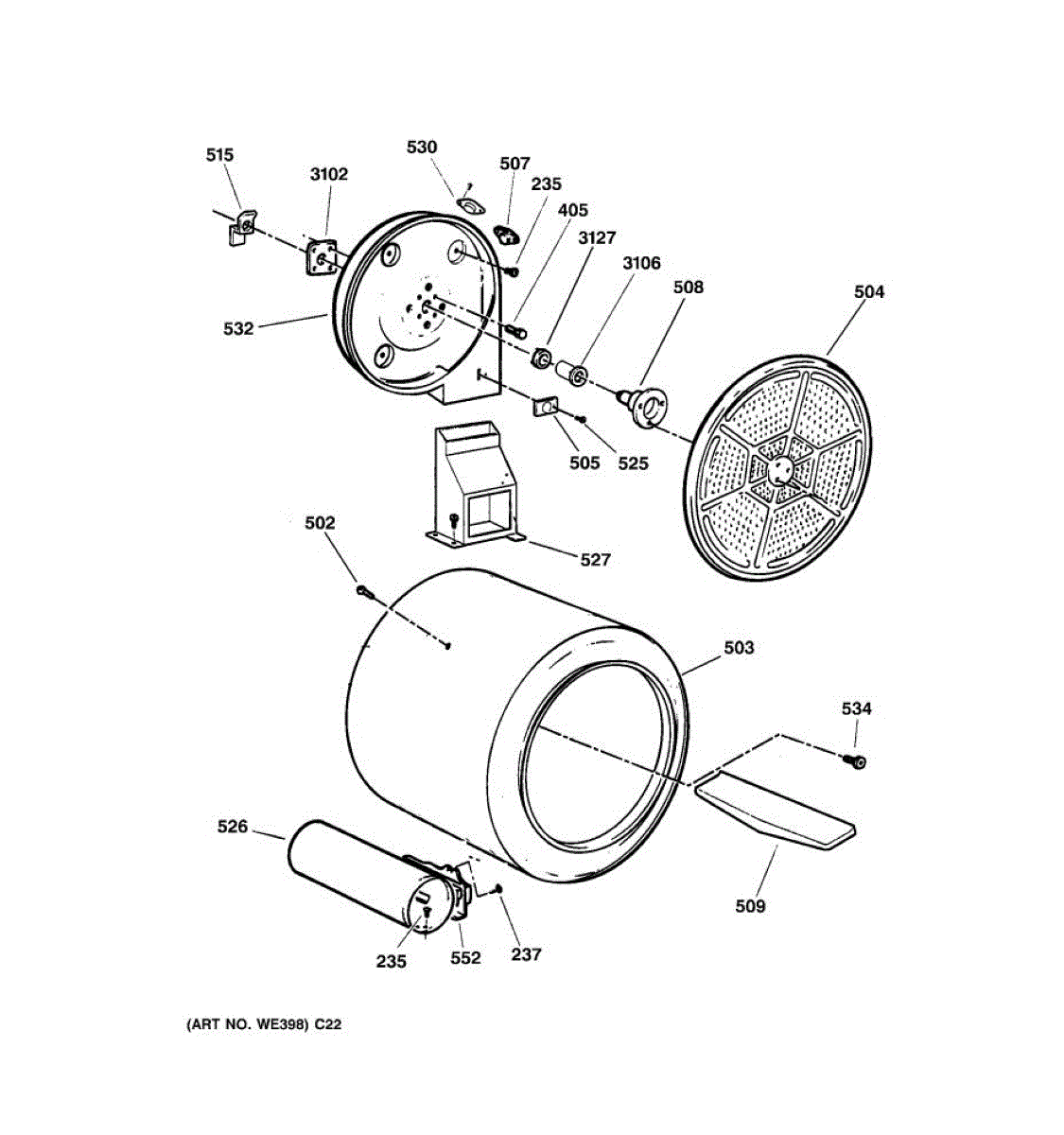 Parts for Ge DBSR463GG2WW: 04 - Drum Parts