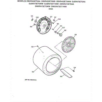 Parts for Ge DBXR453ET0WB: 04 - Drum Parts