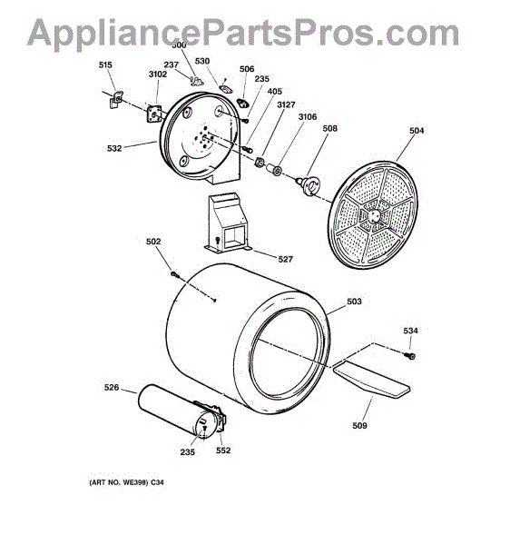 Parts for Ge DBXR463PG4WW: 04 - Drum Parts