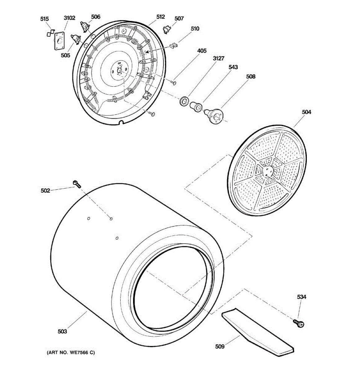 Parts for Ge DCCB330ED0KC: 04 - Drum Parts