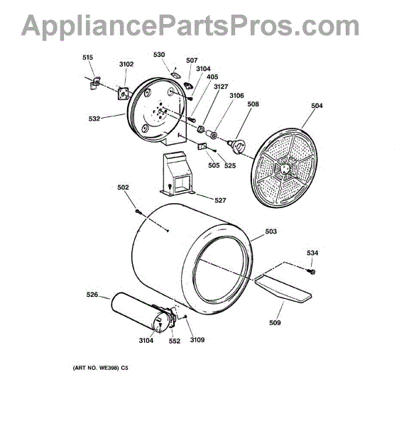 You should replace the rear drum bearing sleeve if it becomes worn out or damaged. Causes of a bad bearing sleeve can include regular wear and tear, lack of lubrication, or excessive loads that cause undue stress on the component. A malfunctioning bearing sleeve can lead to increased friction, noise, and potential damage to other parts of the dryer.