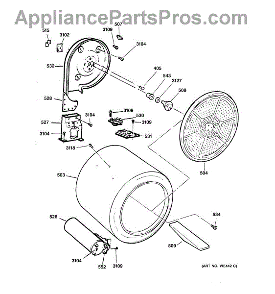 The Belt Drive is an OEM replacement part for GE dryers. It is responsible for transferring power from the motor to the drum. A bad belt drive can be caused by normal wear and tear over time, as well as excessive load or strain on the dryer drum.
