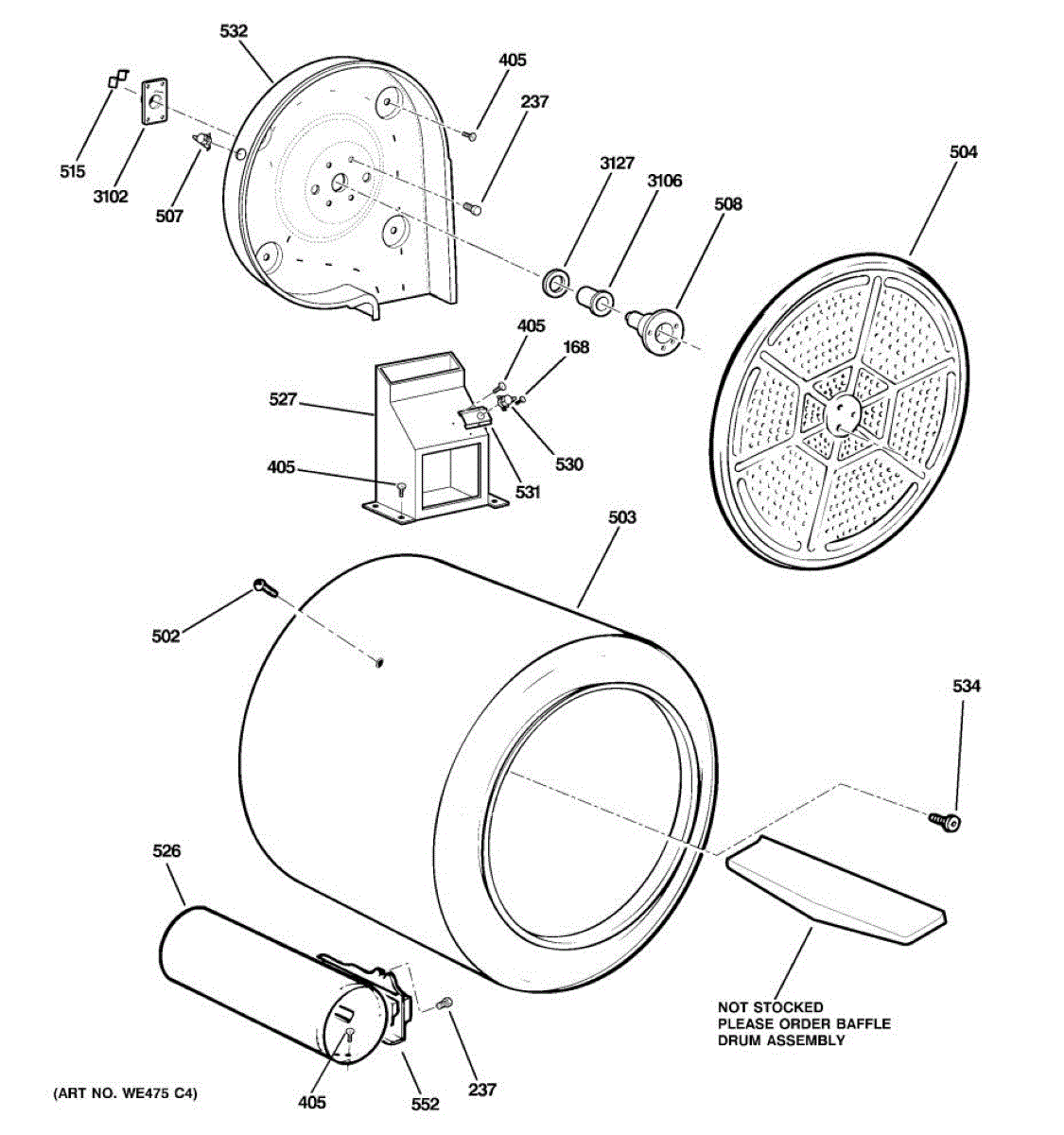 Rear drum bearing kit supports and smoothly rotates your dryer drum. Replace when you hear squealing, screeching, or grinding noises. Verify fit with your model.