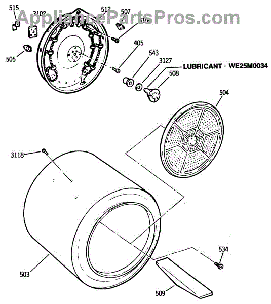 The Bearing Retainer is an OEM replacement part for GE electric dryers. It is an internal component that securely holds the drum bearing assembly in place to enable smooth rotation and provides structural bracing for the bearing during tumbling cycles.