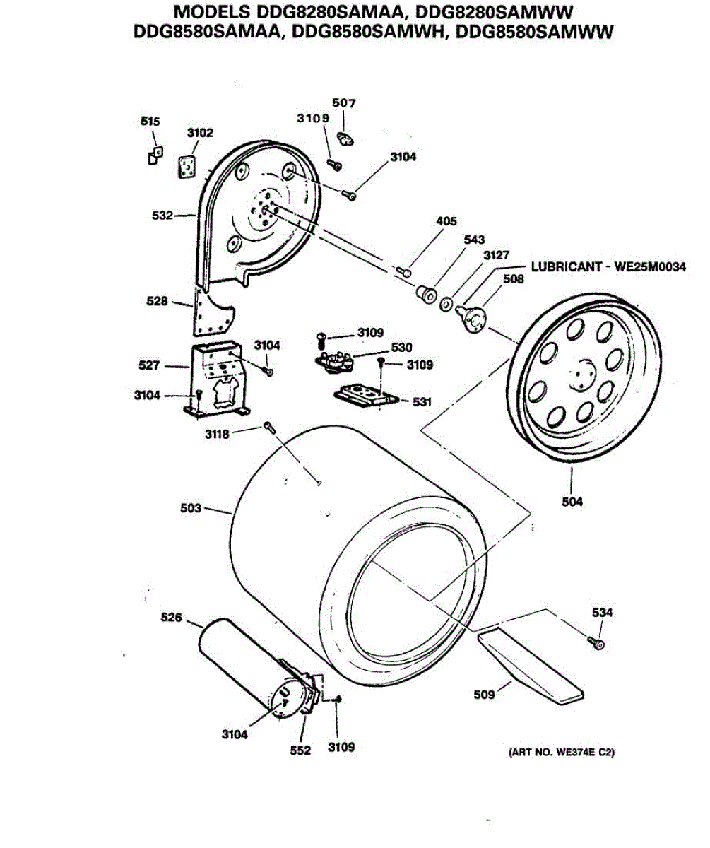 Rear drum bearing kit supports and smoothly rotates your dryer drum. Replace when you hear squealing, screeching, or grinding noises. Verify fit with your model.
