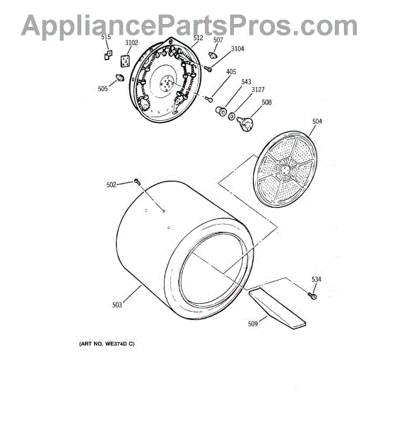 Parts for Ge DDSR475ET2WW: 04 - Drum Parts