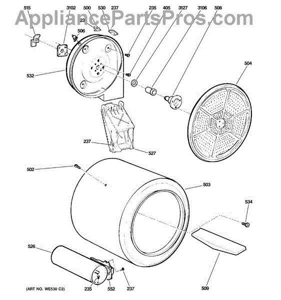 You should replace the rear drum bearing sleeve if it becomes worn out or damaged. Causes of a bad bearing sleeve can include regular wear and tear, lack of lubrication, or excessive loads that cause undue stress on the component. A malfunctioning bearing sleeve can lead to increased friction, noise, and potential damage to other parts of the dryer.