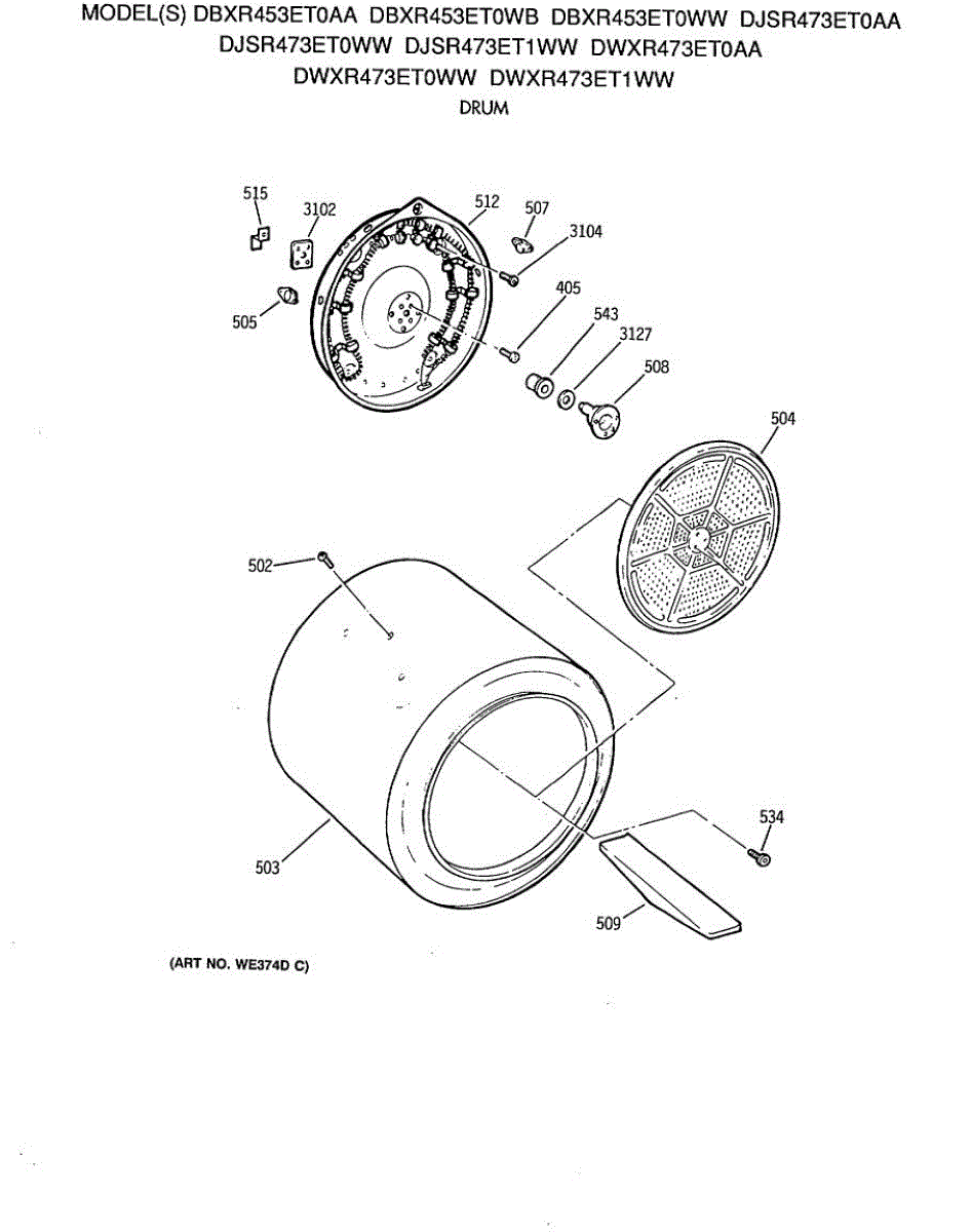Parts for Ge DJSR473ET0WW: 04 - Drum Parts