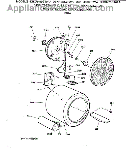 Parts for Ge DJSR473GT0AA: 05 - Drum Parts