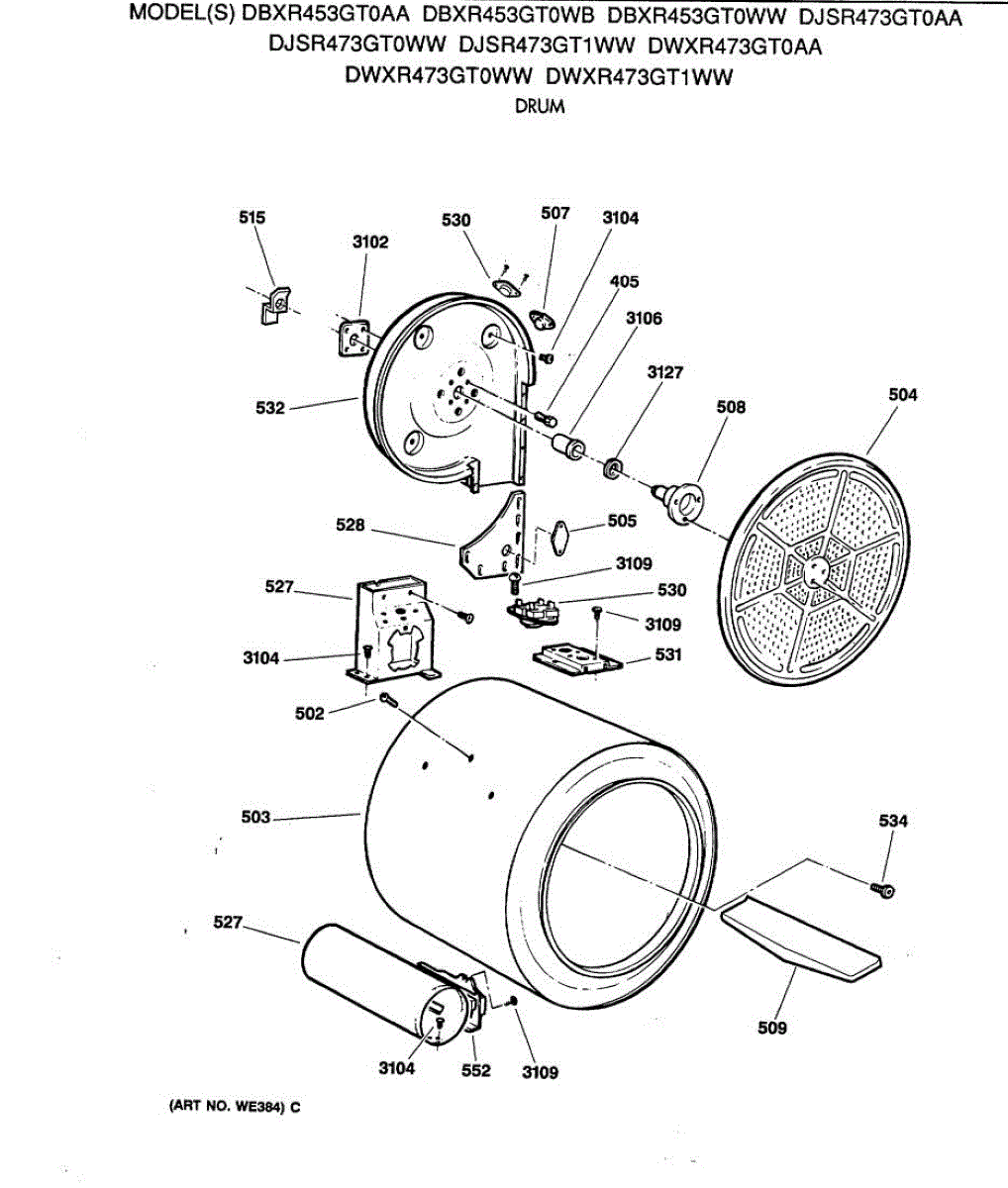 Rear drum bearing kit supports and smoothly rotates your dryer drum. Replace when you hear squealing, screeching, or grinding noises. Verify fit with your model.