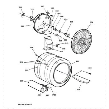 The Bearing Retainer is an OEM replacement part for GE electric dryers. It is an internal component that securely holds the drum bearing assembly in place to enable smooth rotation and provides structural bracing for the bearing during tumbling cycles.