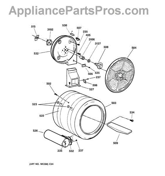 You should replace the rear drum bearing sleeve if it becomes worn out or damaged. Causes of a bad bearing sleeve can include regular wear and tear, lack of lubrication, or excessive loads that cause undue stress on the component. A malfunctioning bearing sleeve can lead to increased friction, noise, and potential damage to other parts of the dryer.