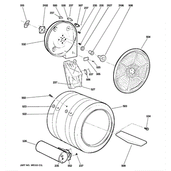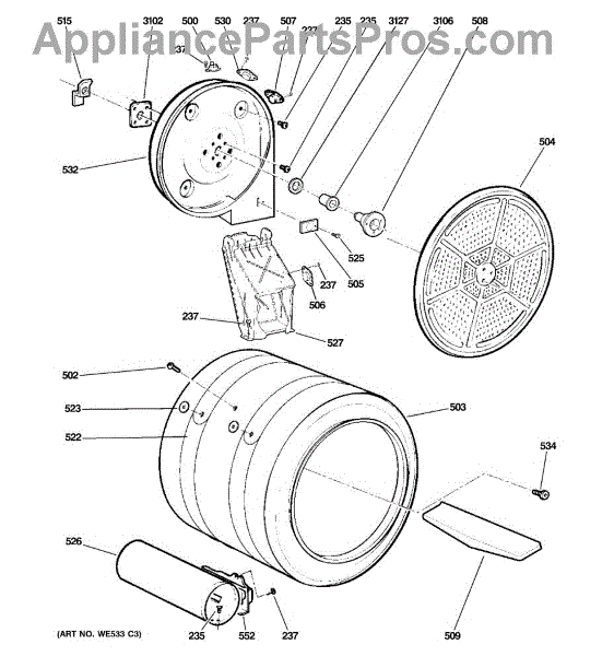 You should replace the rear drum bearing sleeve if it becomes worn out or damaged. Causes of a bad bearing sleeve can include regular wear and tear, lack of lubrication, or excessive loads that cause undue stress on the component. A malfunctioning bearing sleeve can lead to increased friction, noise, and potential damage to other parts of the dryer.
