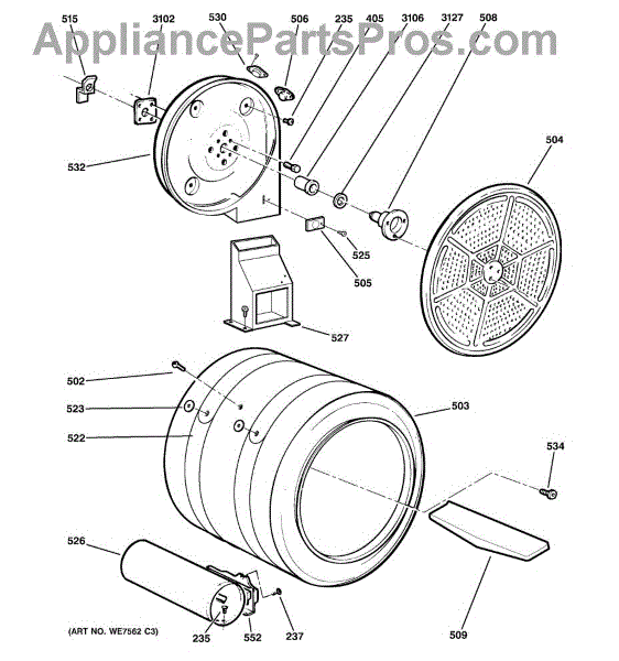 Parts for Ge DNCK440GA2WC: 04 - Drum Parts