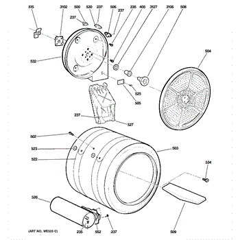 You should replace the rear drum bearing sleeve if it becomes worn out or damaged. Causes of a bad bearing sleeve can include regular wear and tear, lack of lubrication, or excessive loads that cause undue stress on the component. A malfunctioning bearing sleeve can lead to increased friction, noise, and potential damage to other parts of the dryer.