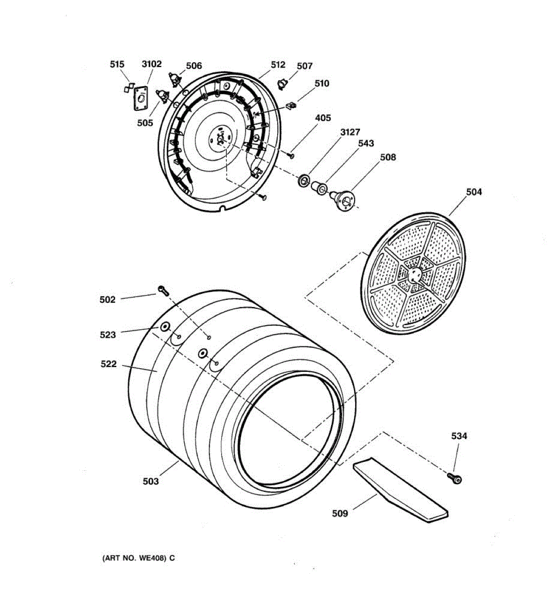 Rear drum bearing kit supports and smoothly rotates your dryer drum. Replace when you hear squealing, screeching, or grinding noises. Verify fit with your model.