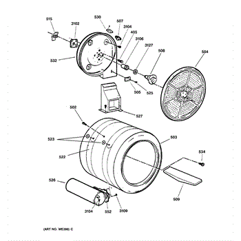 The Bearing Retainer is an OEM replacement part for GE electric dryers. It is an internal component that securely holds the drum bearing assembly in place to enable smooth rotation and provides structural bracing for the bearing during tumbling cycles.