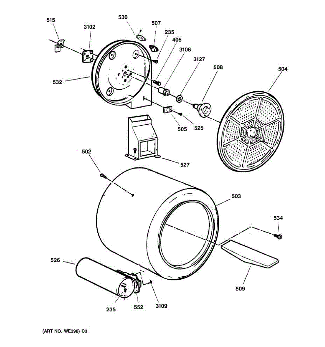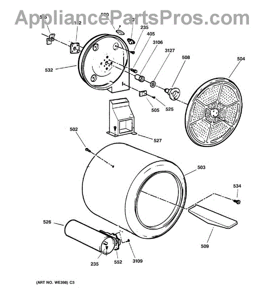 Rear drum bearing kit supports and smoothly rotates your dryer drum. Replace when you hear squealing, screeching, or grinding noises. Verify fit with your model.