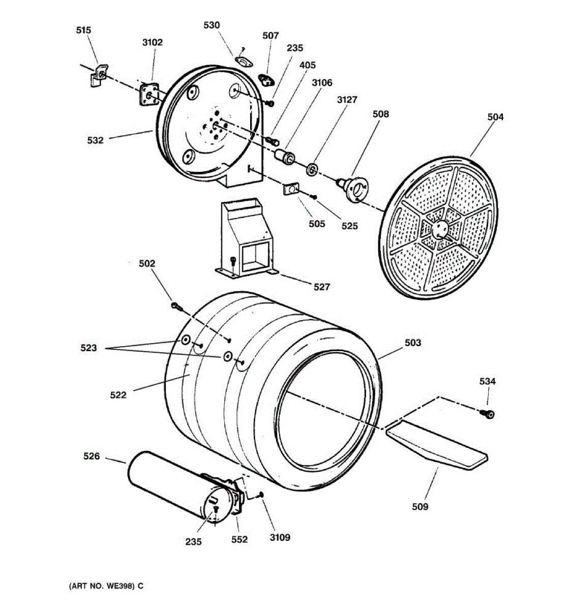 Rear drum bearing kit supports and smoothly rotates your dryer drum. Replace when you hear squealing, screeching, or grinding noises. Verify fit with your model.