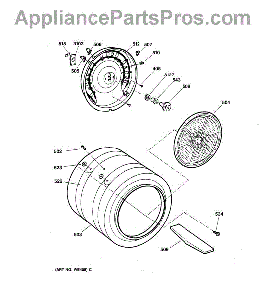 You should replace the rear drum bearing sleeve if it becomes worn out or damaged. Causes of a bad bearing sleeve can include regular wear and tear, lack of lubrication, or excessive loads that cause undue stress on the component. A malfunctioning bearing sleeve can lead to increased friction, noise, and potential damage to other parts of the dryer.