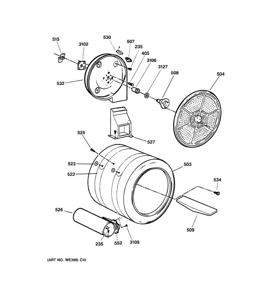 Rear drum bearing kit supports and smoothly rotates your dryer drum. Replace when you hear squealing, screeching, or grinding noises. Verify fit with your model.