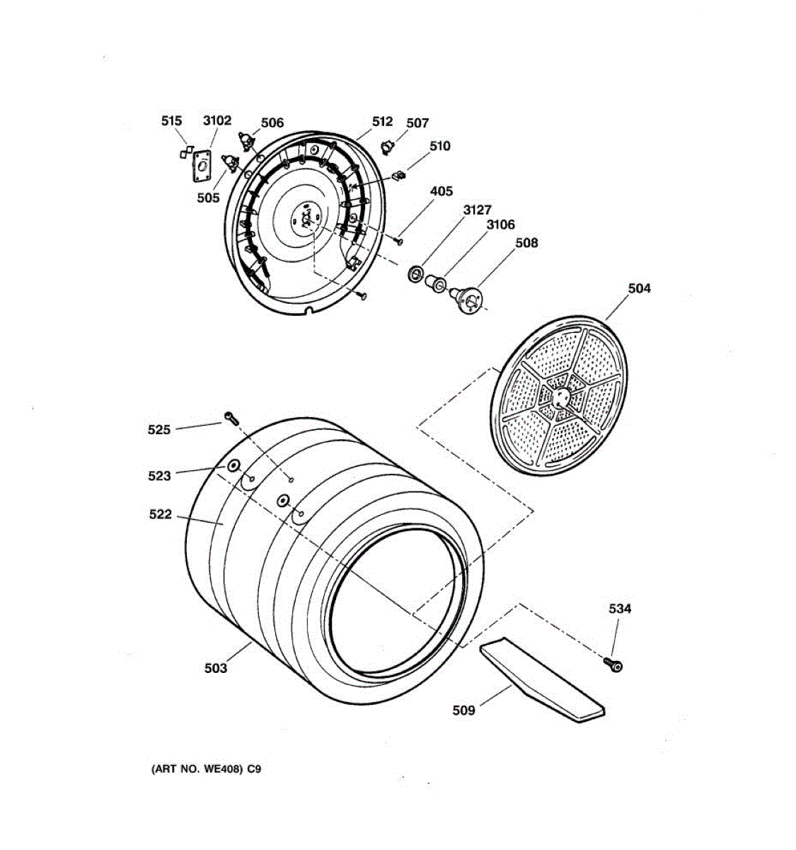 Parts for Ge DPSB650EC1WW: 04 - Drum Parts