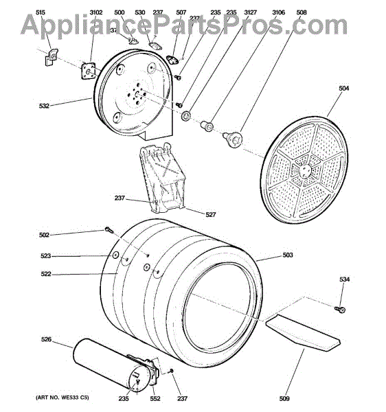 You should replace the rear drum bearing sleeve if it becomes worn out or damaged. Causes of a bad bearing sleeve can include regular wear and tear, lack of lubrication, or excessive loads that cause undue stress on the component. A malfunctioning bearing sleeve can lead to increased friction, noise, and potential damage to other parts of the dryer.