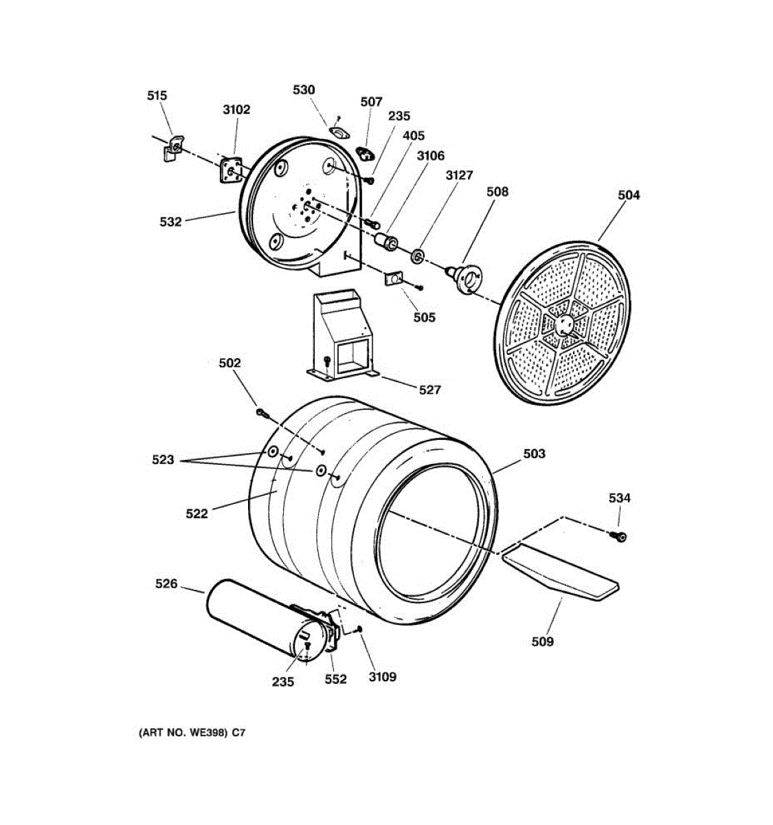 Rear drum bearing kit supports and smoothly rotates your dryer drum. Replace when you hear squealing, screeching, or grinding noises. Verify fit with your model.