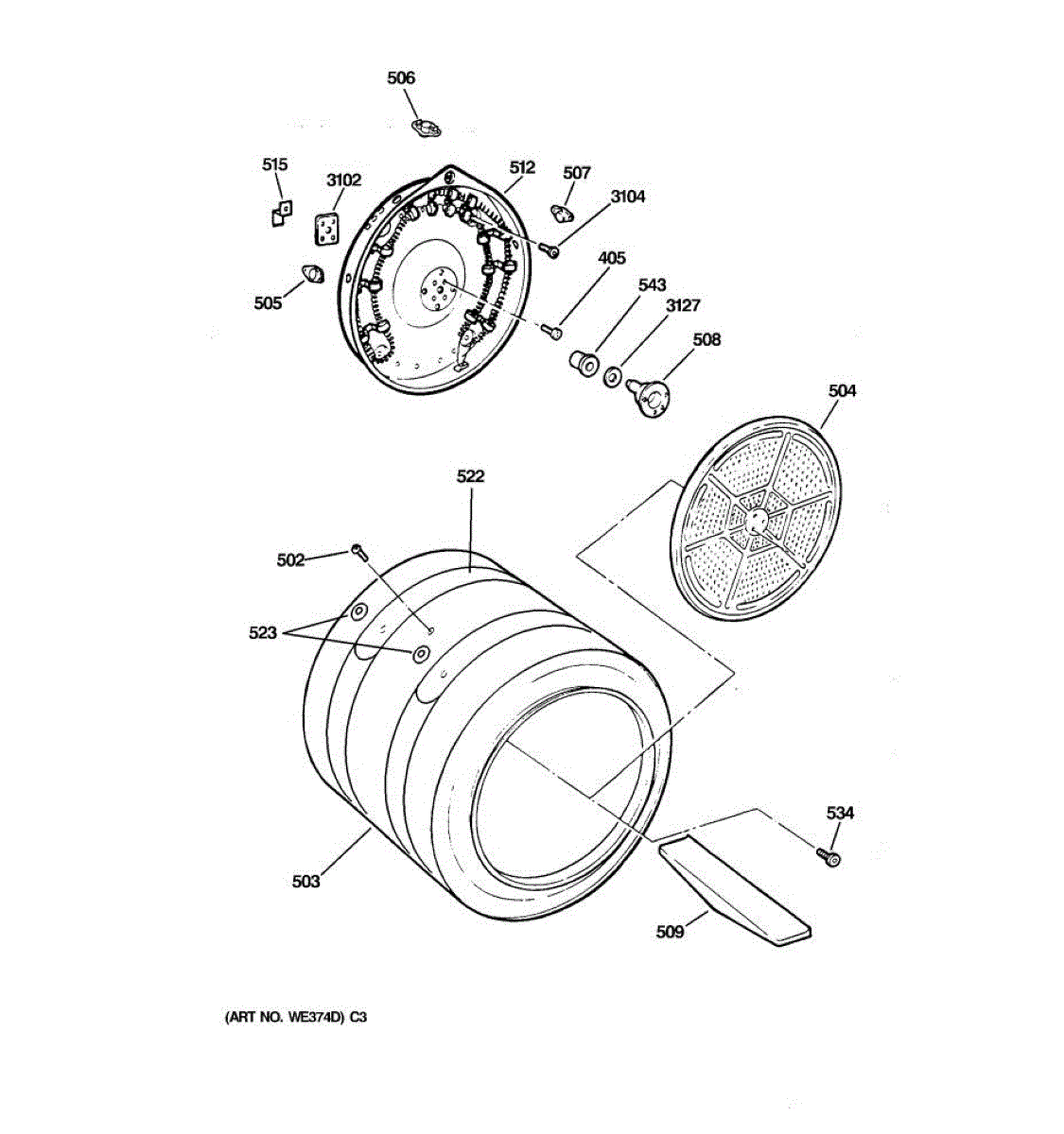 Rear drum bearing kit supports and smoothly rotates your dryer drum. Replace when you hear squealing, screeching, or grinding noises. Verify fit with your model.