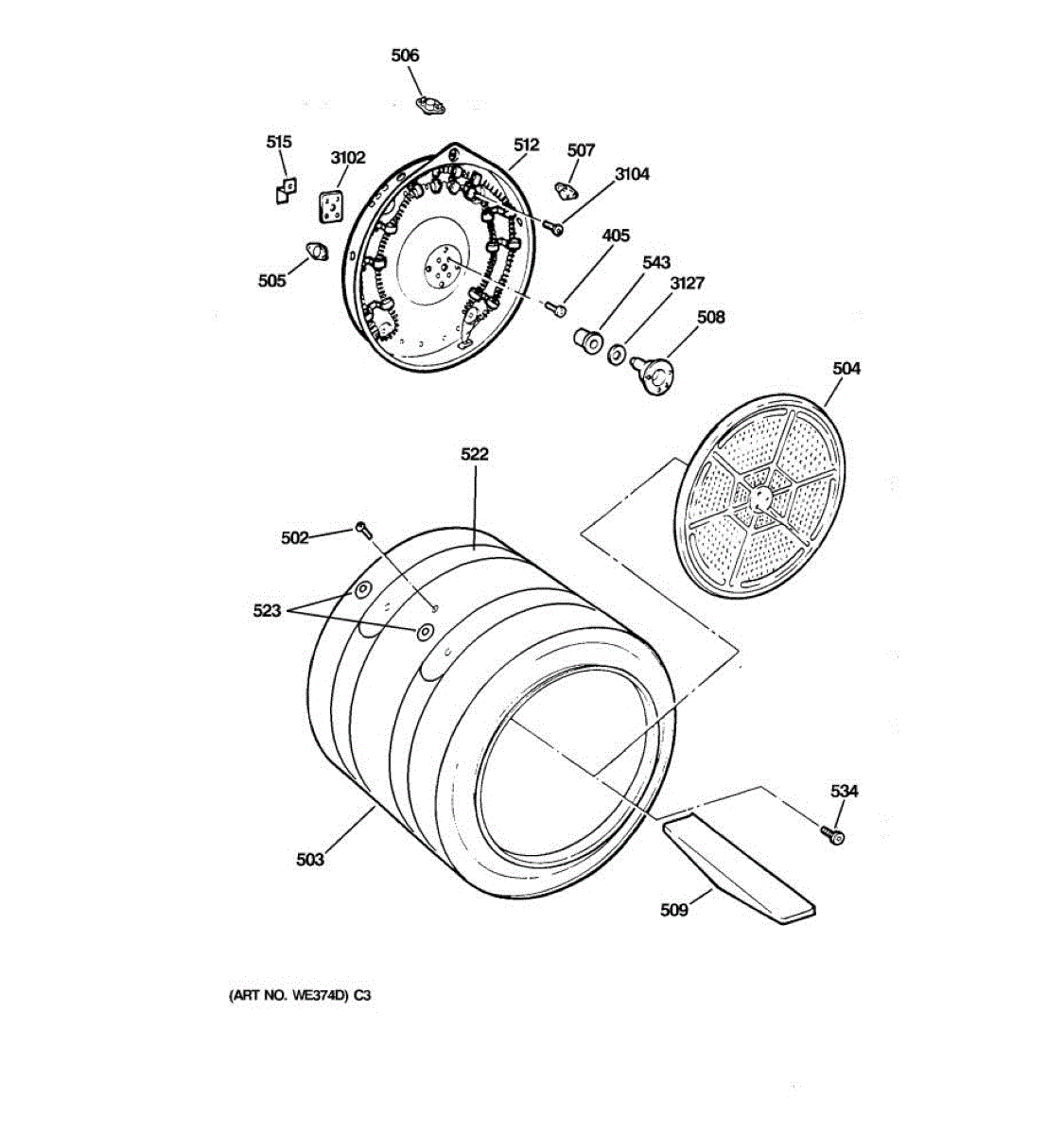 Parts for Ge DPSF505EW1WW: 04 - Drum Parts