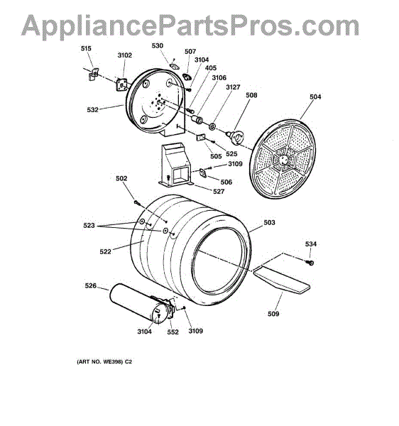 Rear drum bearing kit supports and smoothly rotates your dryer drum. Replace when you hear squealing, screeching, or grinding noises. Verify fit with your model.