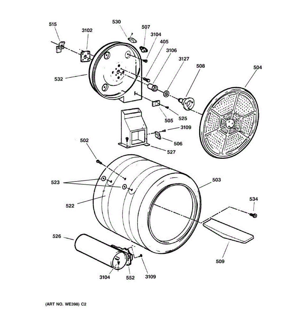 Parts for Ge DPSF505GW2WW: 04 - Drum Parts
