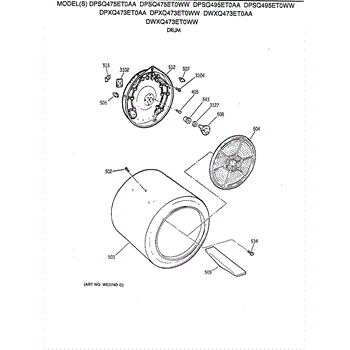 Front bulkhead drum assembly for dryers. Replaces cracked, damaged, or worn drum housing. Installs at front of dryer drum to support rotation assembly.