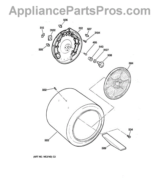 Parts for Ge DPSR473EW0WW: 04 - Drum Parts