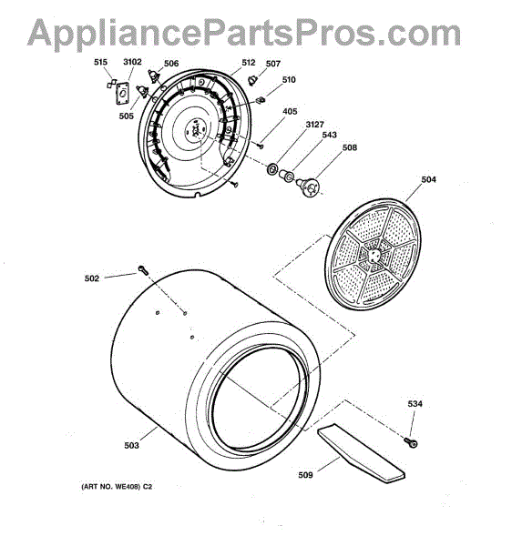 Parts for Ge DPSR473EW1AA: 04 - Drum Parts