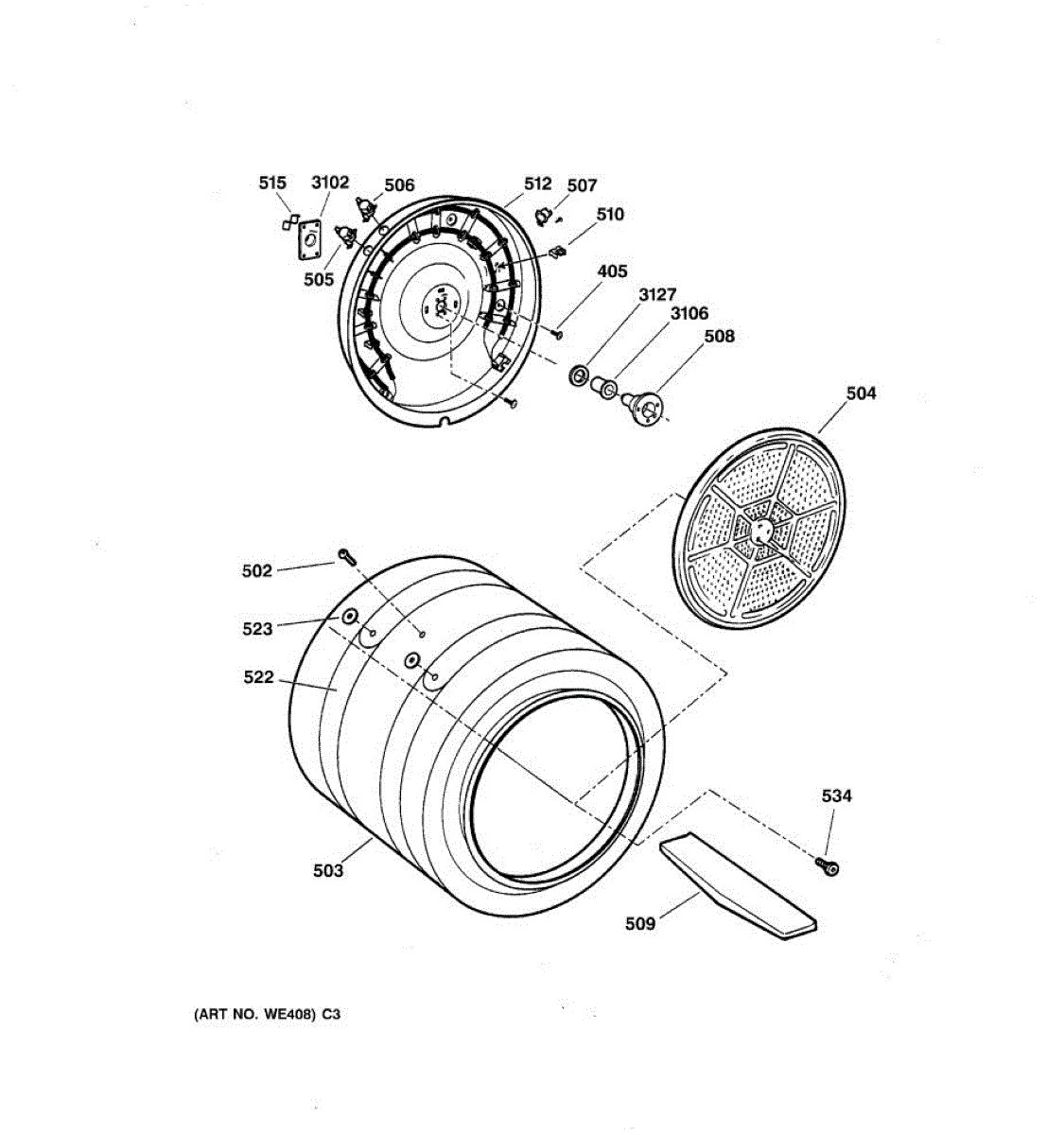 Parts for Ge DPSR513EA0WW: 04 - Drum Parts