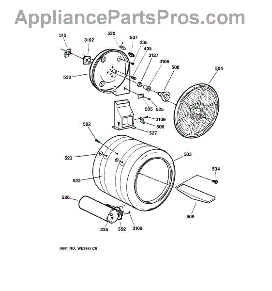 You should replace the rear drum bearing sleeve if it becomes worn out or damaged. Causes of a bad bearing sleeve can include regular wear and tear, lack of lubrication, or excessive loads that cause undue stress on the component. A malfunctioning bearing sleeve can lead to increased friction, noise, and potential damage to other parts of the dryer.
