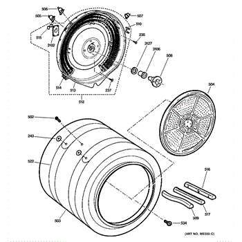 The Drum Support Shaft and Bearing is an OEM part for GE dryers. This component supports the drum and allows it to rotate smoothly during the drying cycle. The bearing reduces friction, ensuring quiet and efficient operation of the drum.