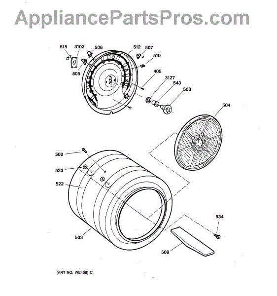 Parts for Ge DPXB515EB0WW: 04 - Drum Parts