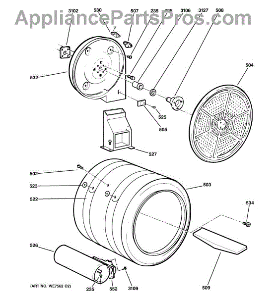 You should replace the rear drum bearing sleeve if it becomes worn out or damaged. Causes of a bad bearing sleeve can include regular wear and tear, lack of lubrication, or excessive loads that cause undue stress on the component. A malfunctioning bearing sleeve can lead to increased friction, noise, and potential damage to other parts of the dryer.