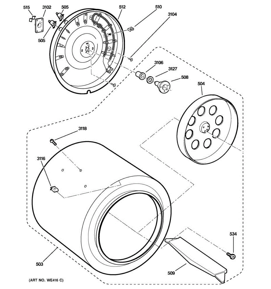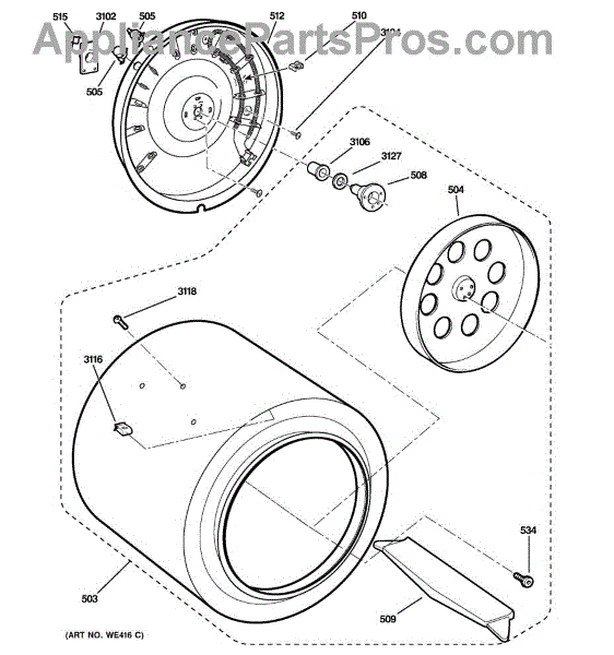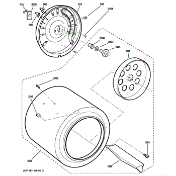Parts for Ge DSKS333EC0WH: 03 - Drum Parts