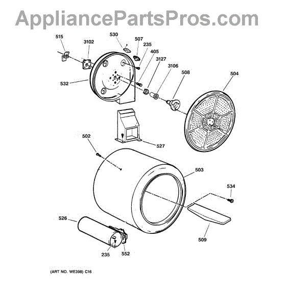Rear drum bearing kit supports and smoothly rotates your dryer drum. Replace when you hear squealing, screeching, or grinding noises. Verify fit with your model.