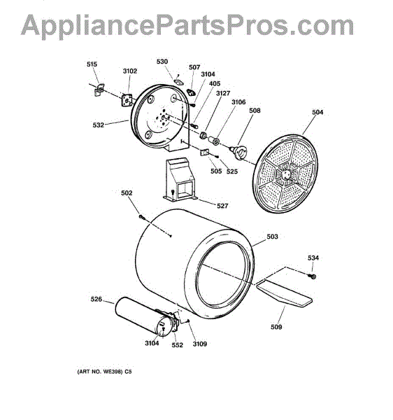 Parts for Ge DWSR483GA1AA: 04 - Drum Parts