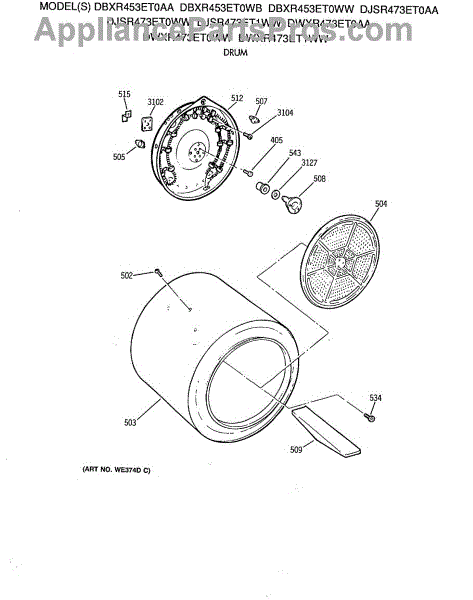 Parts for Ge DWXR473ET0AA: 04 - Drum Parts