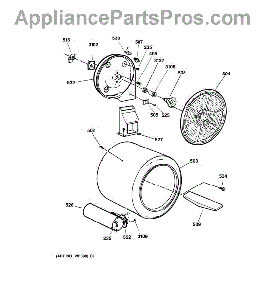 Parts for Ge DWXR483GA1WW: 04 - Drum Parts
