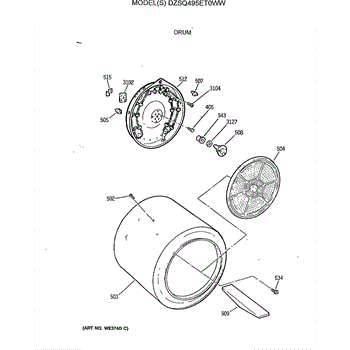 The Bearing Retainer is an OEM replacement part for GE electric dryers. It is an internal component that securely holds the drum bearing assembly in place to enable smooth rotation and provides structural bracing for the bearing during tumbling cycles.