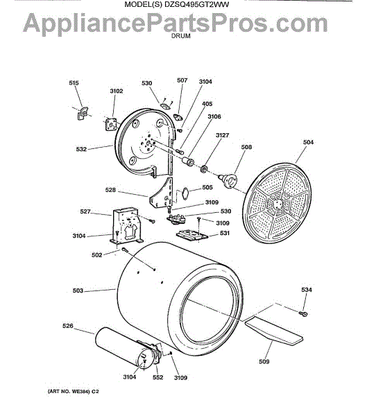 Parts for Ge DZSQ495GT2WW: 04 - Drum Parts