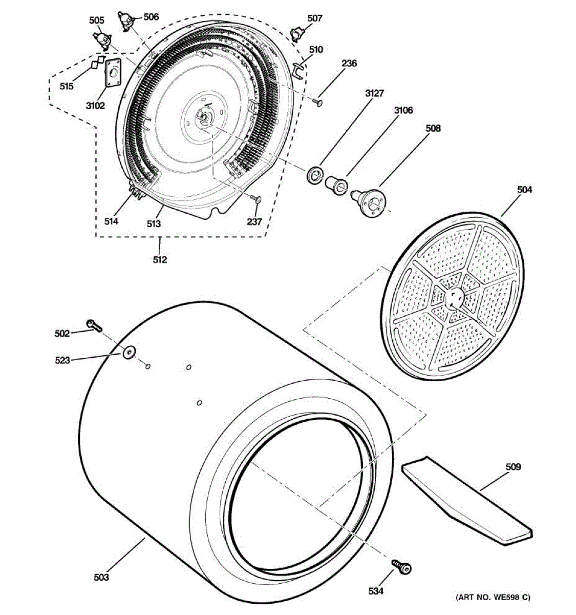 Rear drum bearing kit supports and smoothly rotates your dryer drum. Replace when you hear squealing, screeching, or grinding noises. Verify fit with your model.